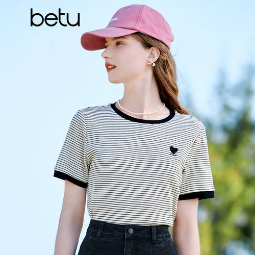 首要,百图betu T恤的规划创意源于经典的是非条纹,时髦而又不失高雅。条纹元素在时髦界一向占有着一席之地,无论是调配牛仔裤、短裙,仍是休闲裤,都能轻松驾御。它的撞色规划更是让全体造型增添了一份生机,成为你夏日衣橱中最亮眼的单品。